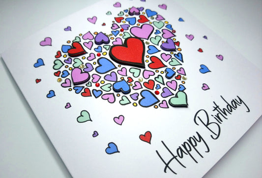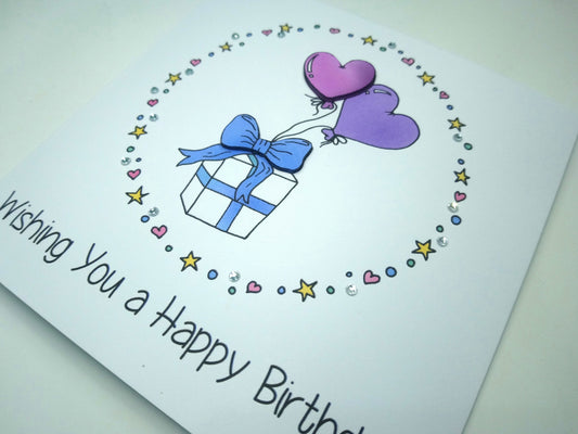 Heart balloons Penblwydd Hapus (Birthday Card) - Welsh Card