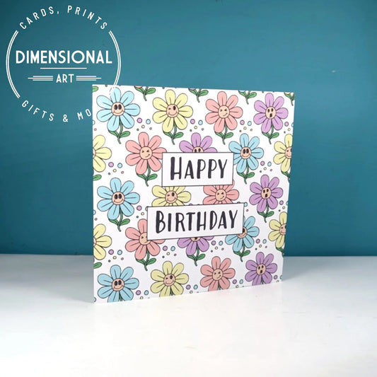 Happy Flowers Penblwydd Hapus (Birthday Card) Welsh Card