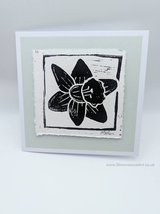 Daffodil - Hand Printed Linocut Cards - Greetings Cards - light green