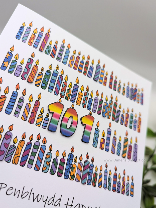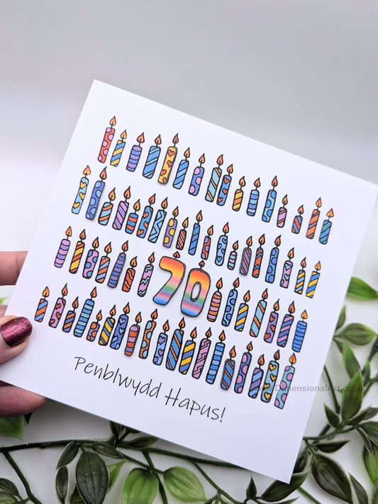 70th Candles Penblwydd Hapus (Birthday) Card 70