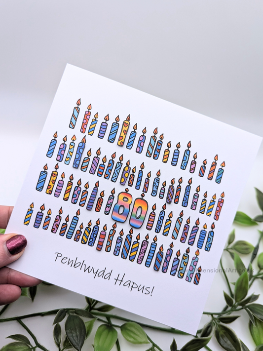 80th Candles Penblwydd Hapus (Birthday) Card 80
