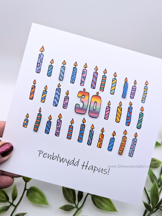 30th Candles Penblwydd Hapus (Birthday) Card 30