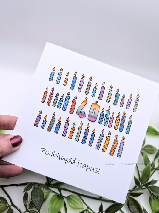 40th Candles Penblwydd Hapus (Birthday) Card 40
