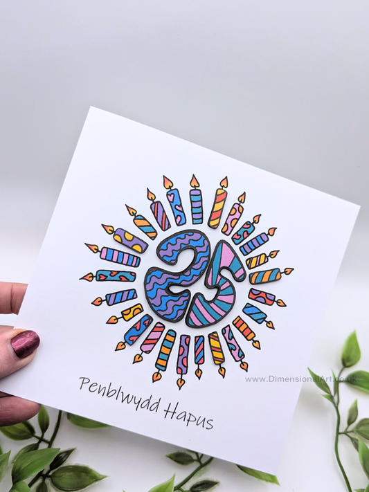 25th Candles Penblwydd Hapus (Birthday) Card 25