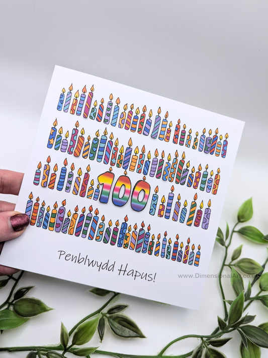 100 Candles Penblwydd Hapus (Birthday Card) 100th
