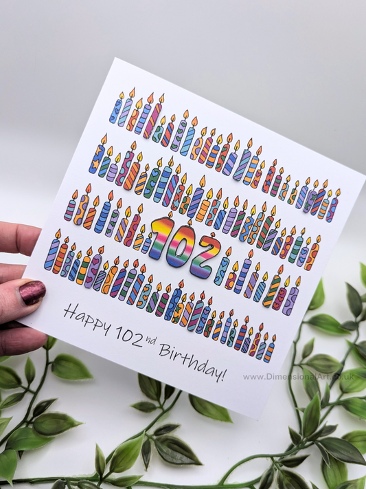 102 Candles Birthday Card 102nd