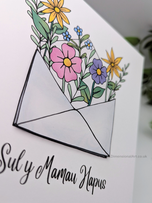 Flower Envelope Sul y mamau hapus (Mothers day) WELSH
