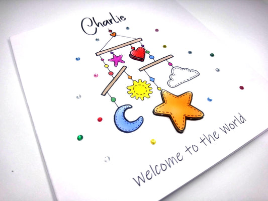 PERSONALISED Welcome to the world - RAINBOW Mobile New Baby Card