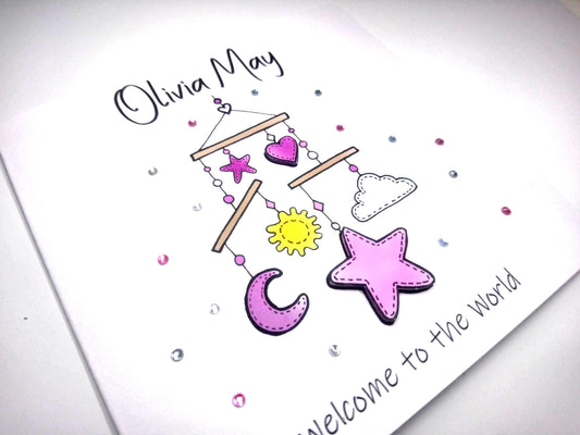 PERSONALISED Welcome to the world - PINK Mobile New Baby Card