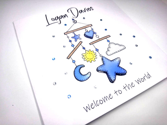 PERSONALISED Welcome to the world - Blue Mobile New Baby Card
