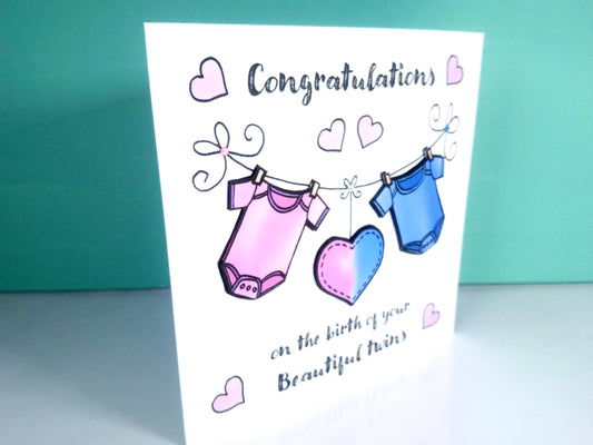 Congratulations on baby Twin Boy and Girl New Babies Card