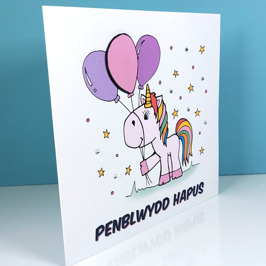 Unicorn Penblwydd Hapus (Birthday) WELSH