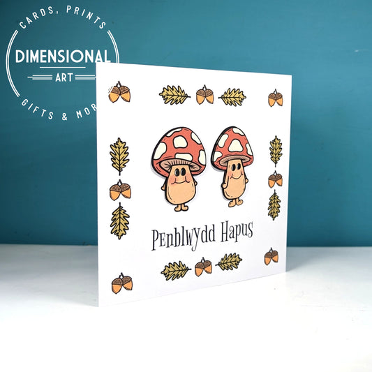 Mushroom Penblwydd Hapus (Birthday Card) Welsh Card