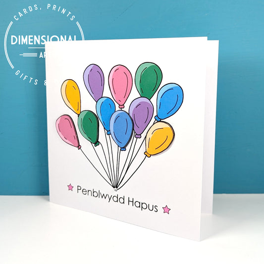 Balloons Penblwydd Hapus (Birthday Card) - Welsh Card