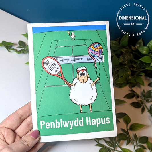 Penblwydd Hapus (Tennis) Sheep (Birthday) Card WELSH