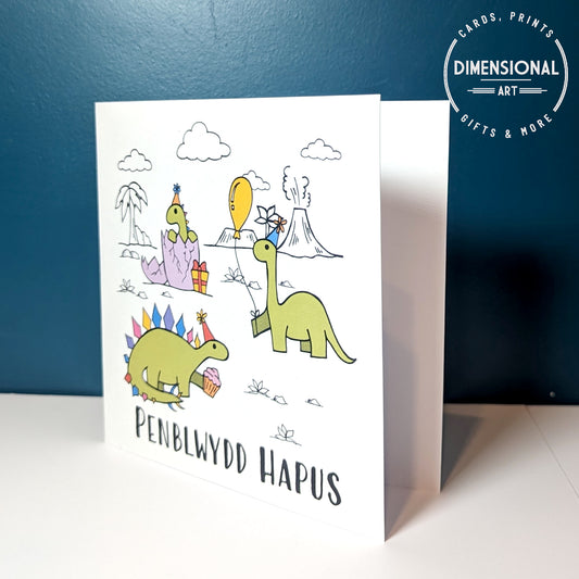 Dino Penblwydd Hapus (Birthday Card) - Welsh Card