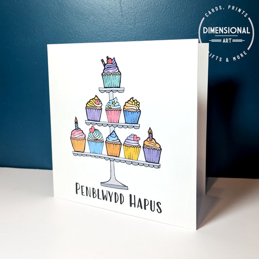 Cupcakes Stand Penblwydd Hapus (Birthday Card) - Welsh Card