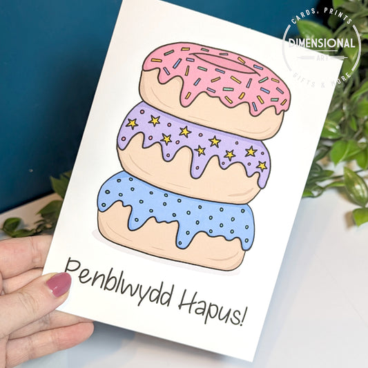 Donuts Penblwydd Hapus (Birthday) Card - Welsh