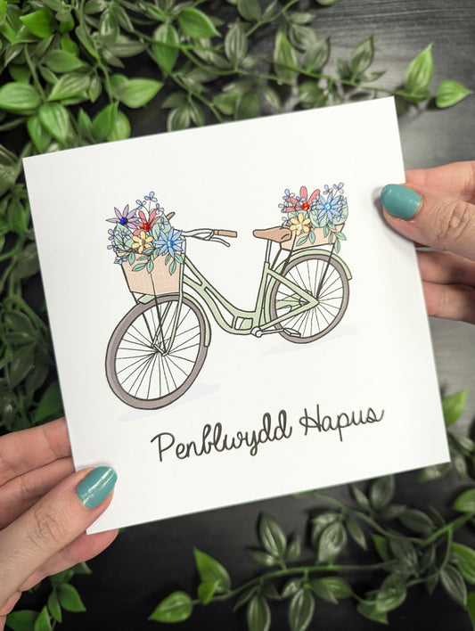 Flower Bike Penblwydd Hapus (Birthday Card) - Welsh Card