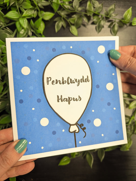 Blue Balloons Penblwydd Hapus (Birthday) Card - Welsh