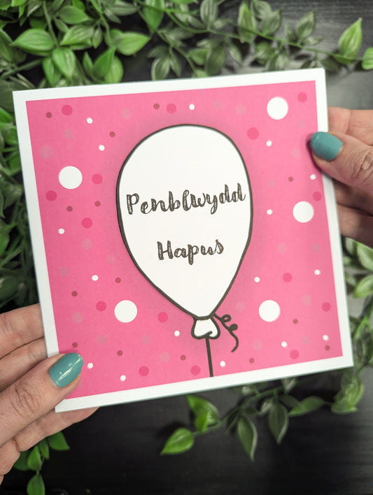 Pink Balloons Penblwydd Hapus (Birthday) Card - Welsh