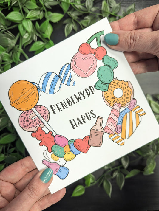 Sweets candy - Penblwydd Hapus (Birthday Card) Welsh Card