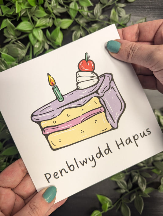 Birthday cake Penblwydd Hapus (Birthday Card) - Welsh Card