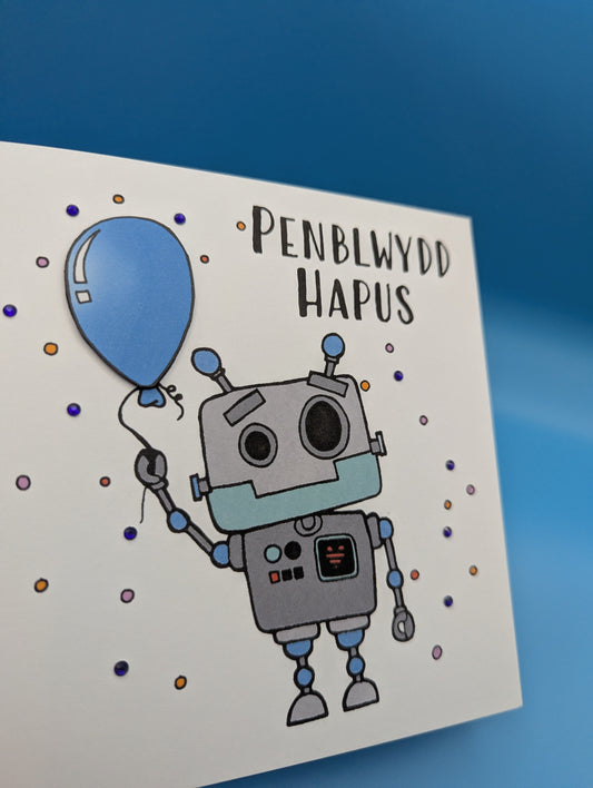 Robot Penblwydd Hapus (Birthday Card) - Welsh Card