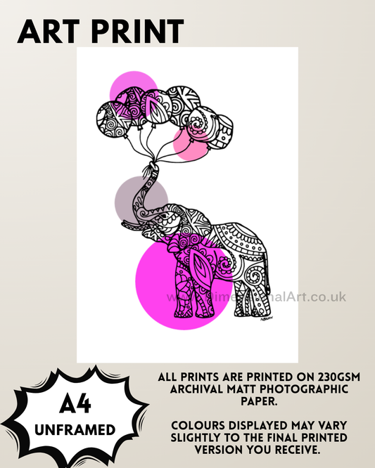 Elephant - pink A4 Print