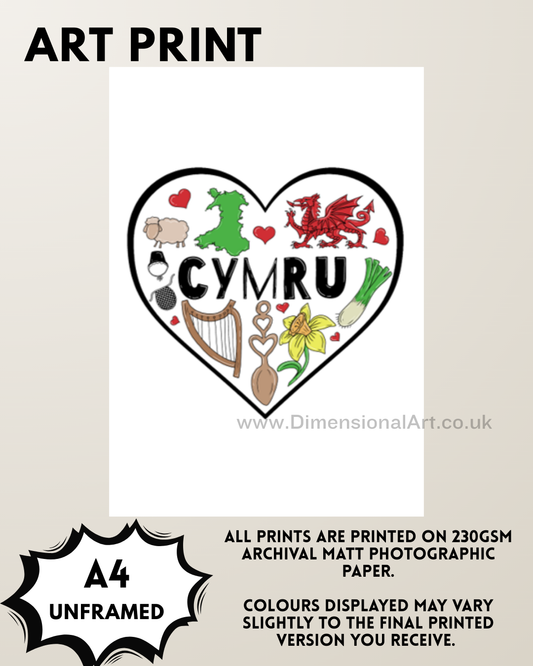 Cymru - Welsh Heart A4 Print
