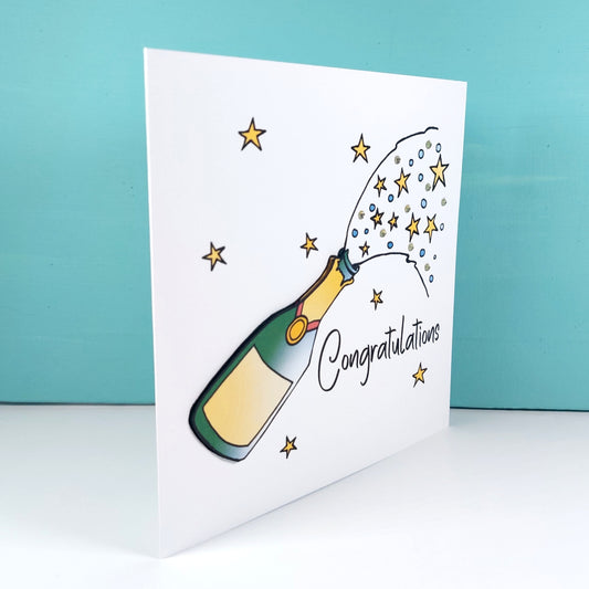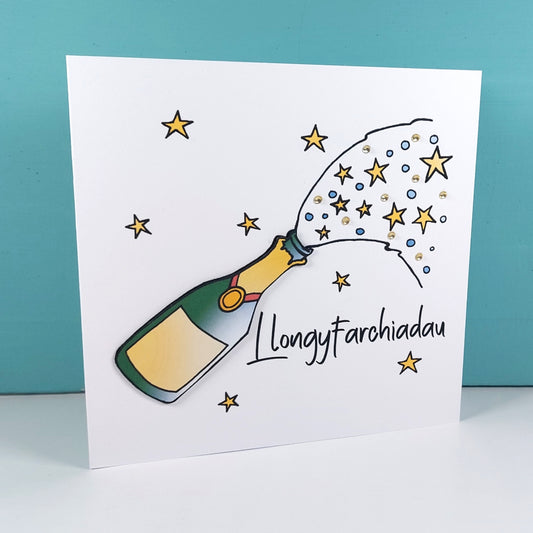 Champaign bottle Llongyfarchiadau (Congratulations) Welsh Card