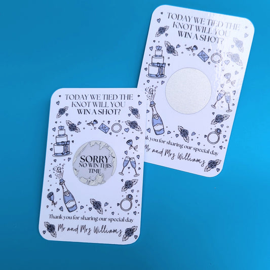 Wedding Day Table Scratch Cards - Drink Game - Personalised - Blue