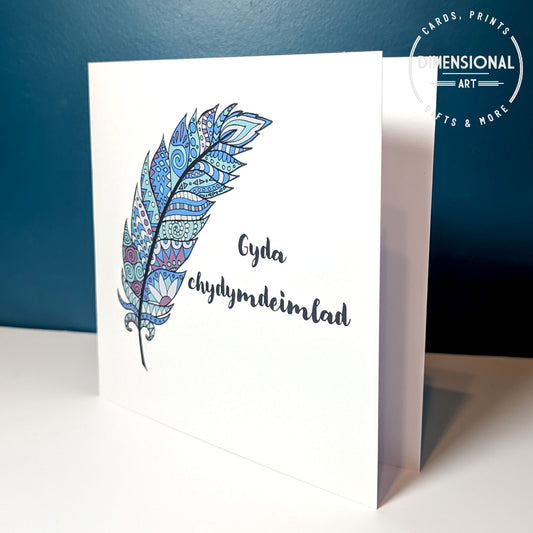 Feather Gyda chydymdeimlad (Sympathy Card) - Welsh
