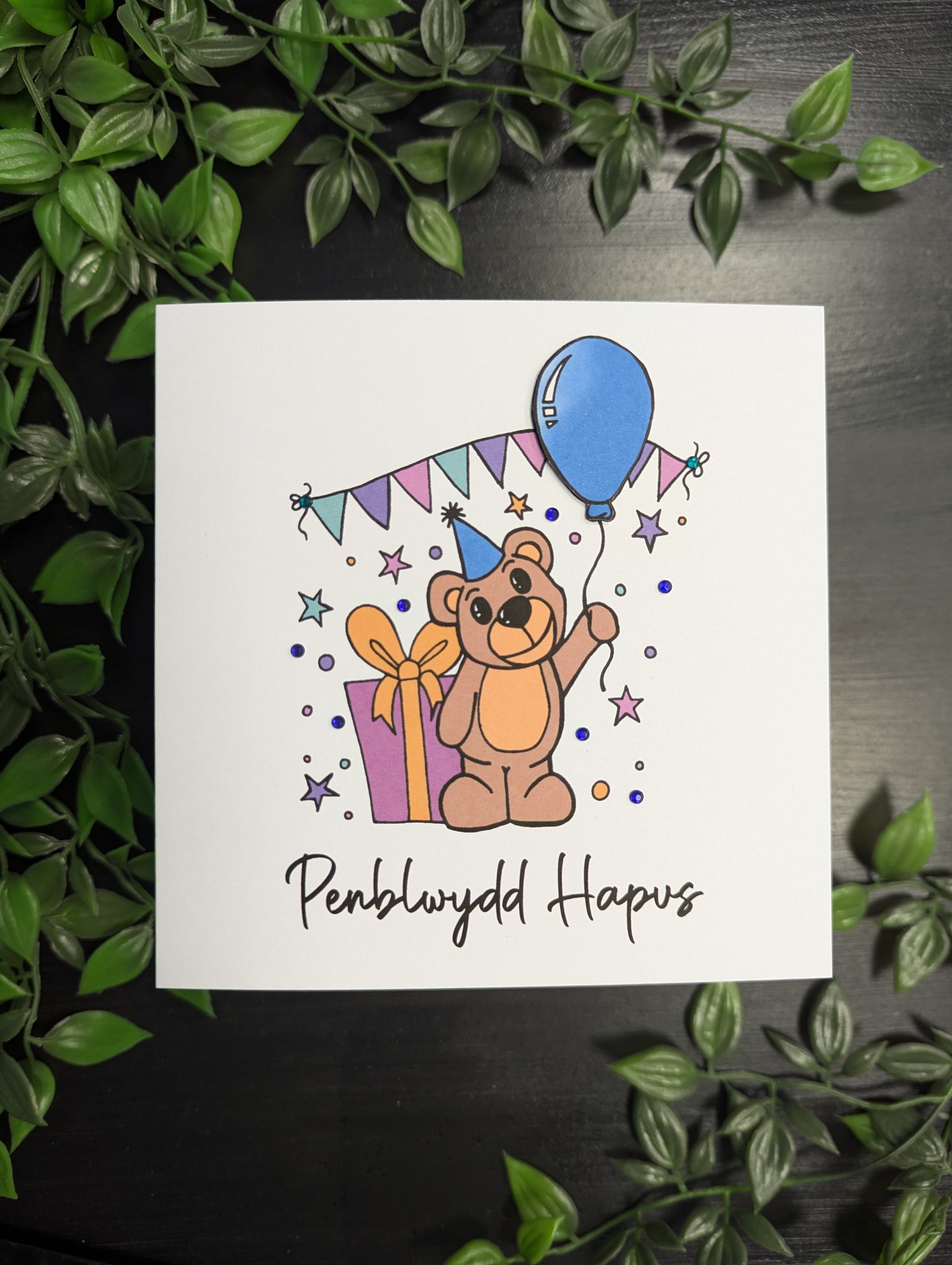 Bear and Balloon Penblwydd Hapus (Birthday Card) - Welsh Card