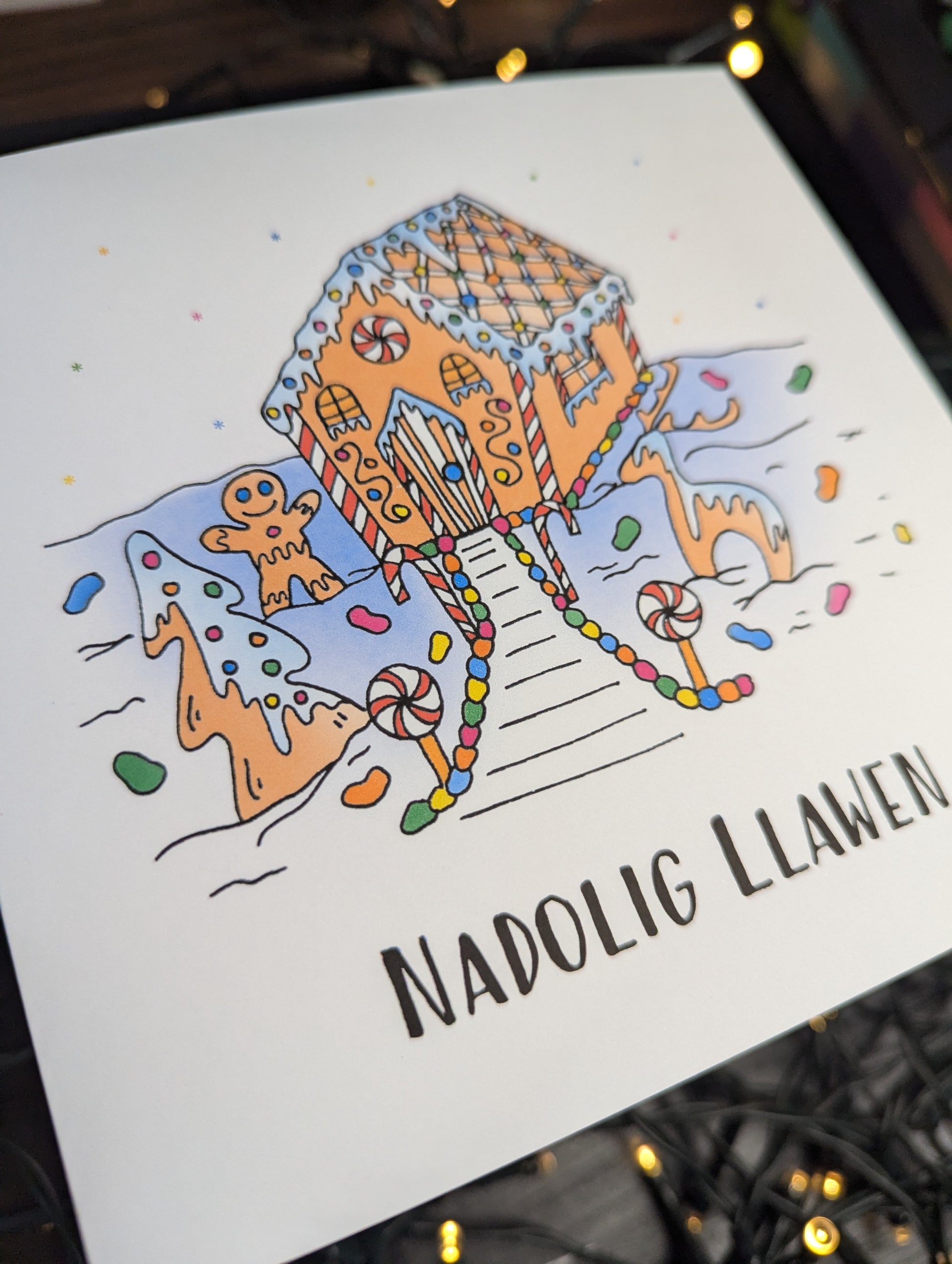 Gingerbread House Nadolig Llawen Christmas Card