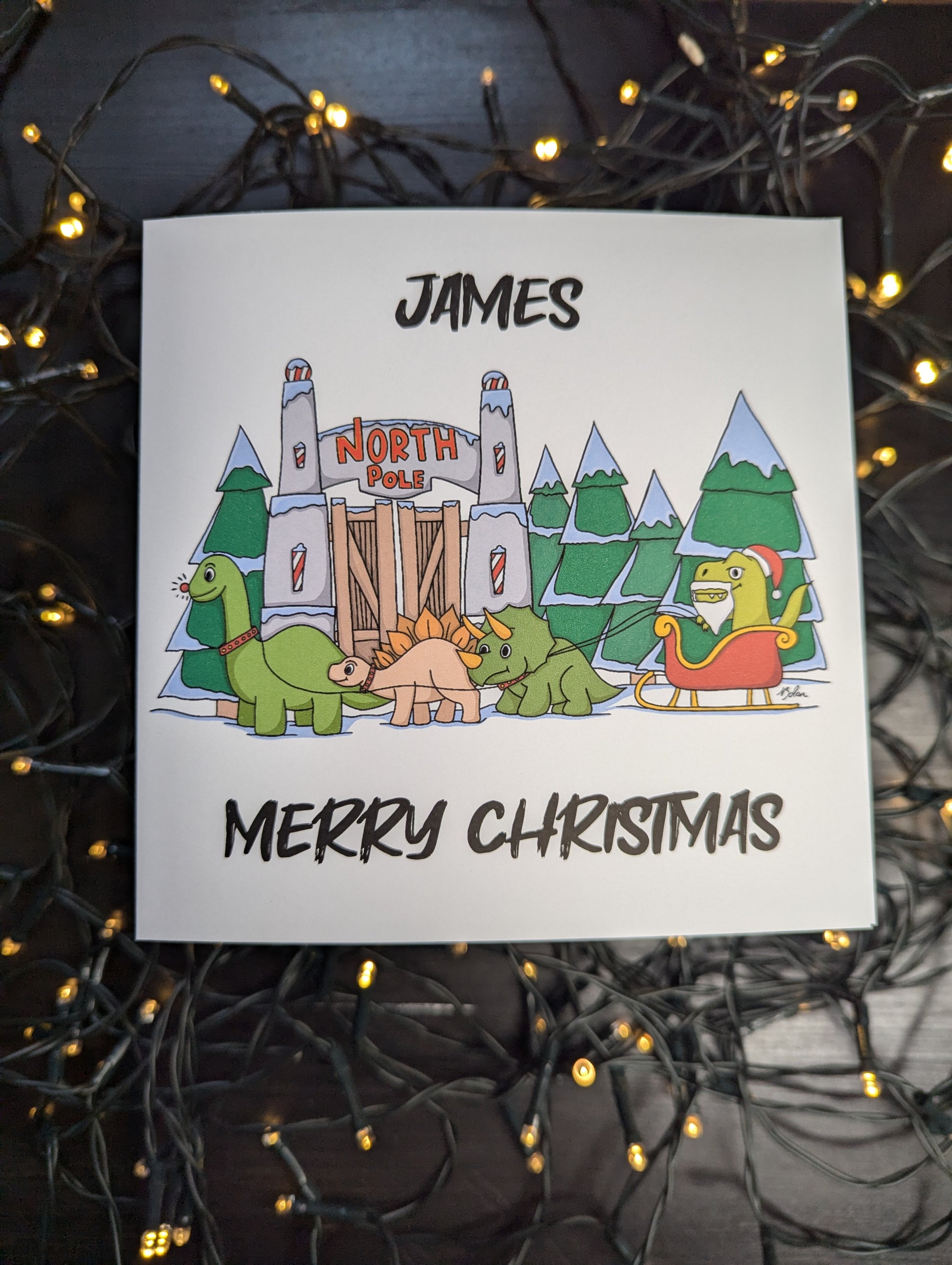 Personalised - Dinosaur Christmas - Nadolig Llawen - Merry Christmas Card (Welsh or English)