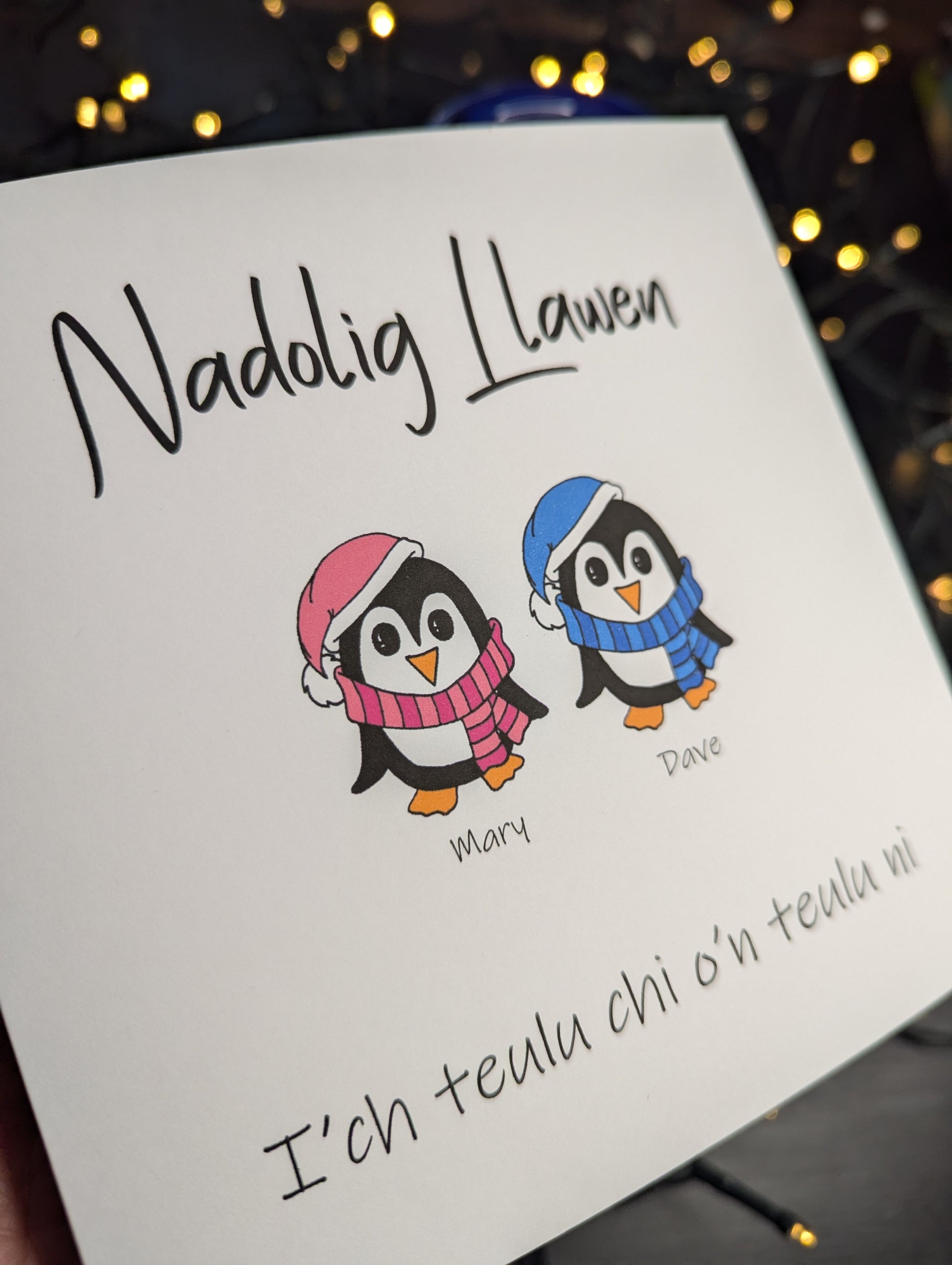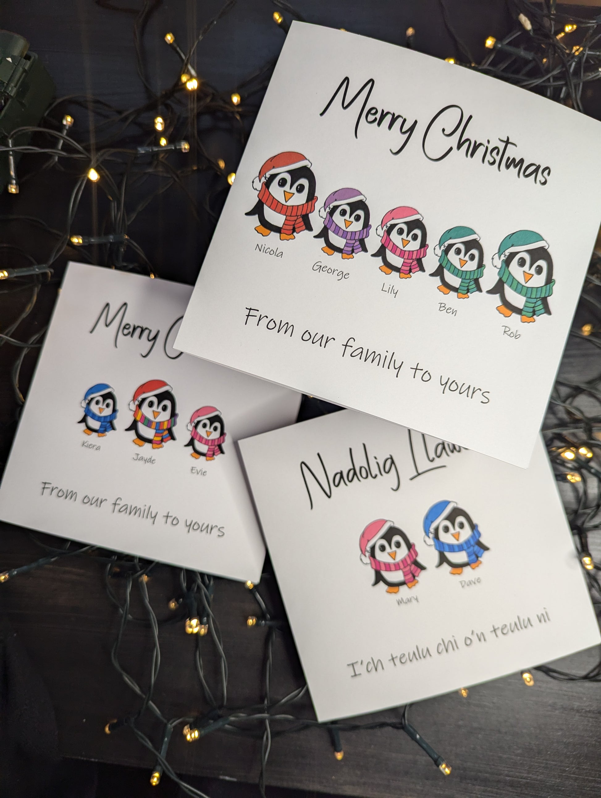 PERSONALISED Penguin Family Christmas Card - Available in Welsh or English