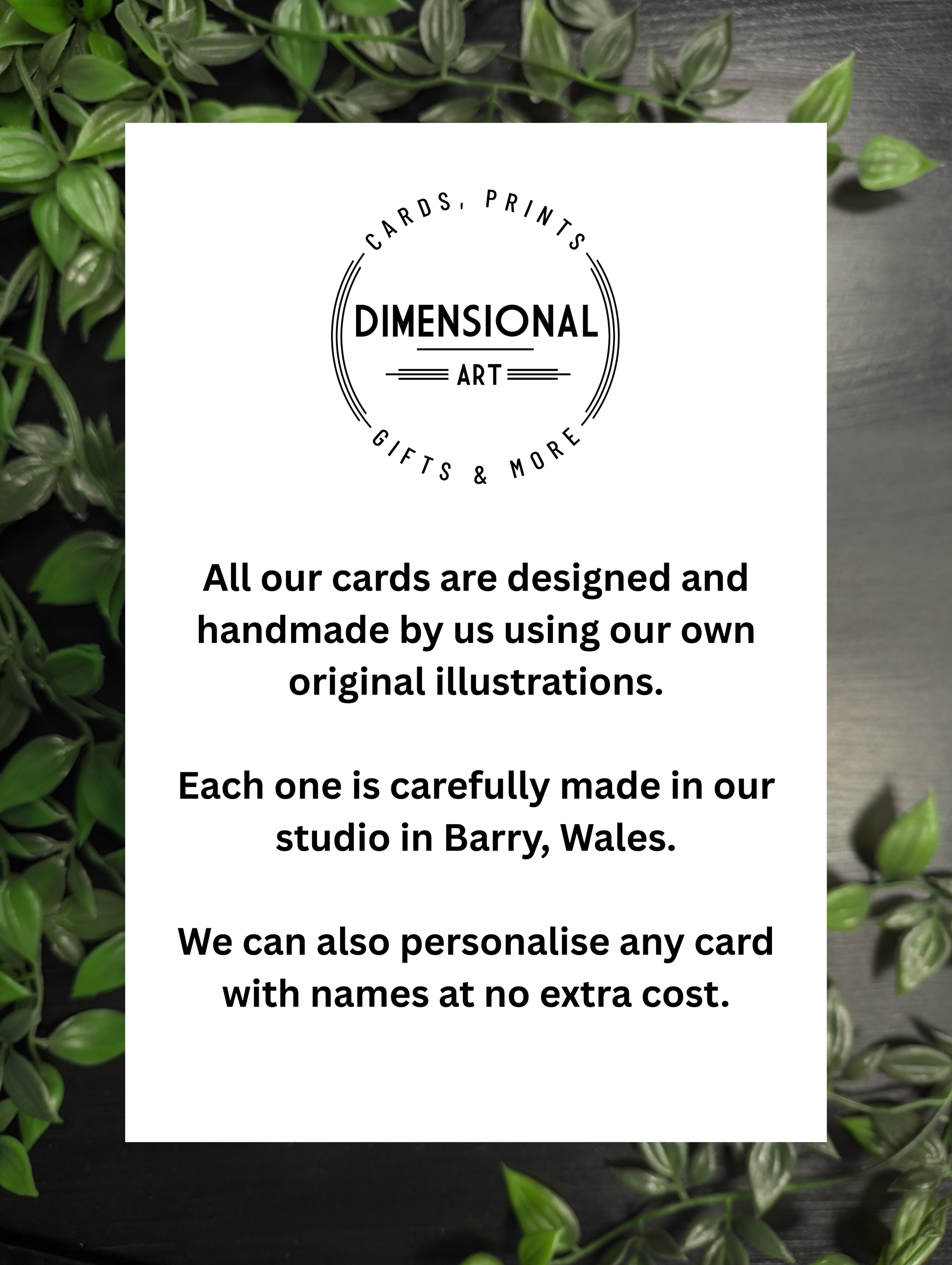 The intellectual property rights of all my illustrations and card designs will remain the property of Dimensional Art.