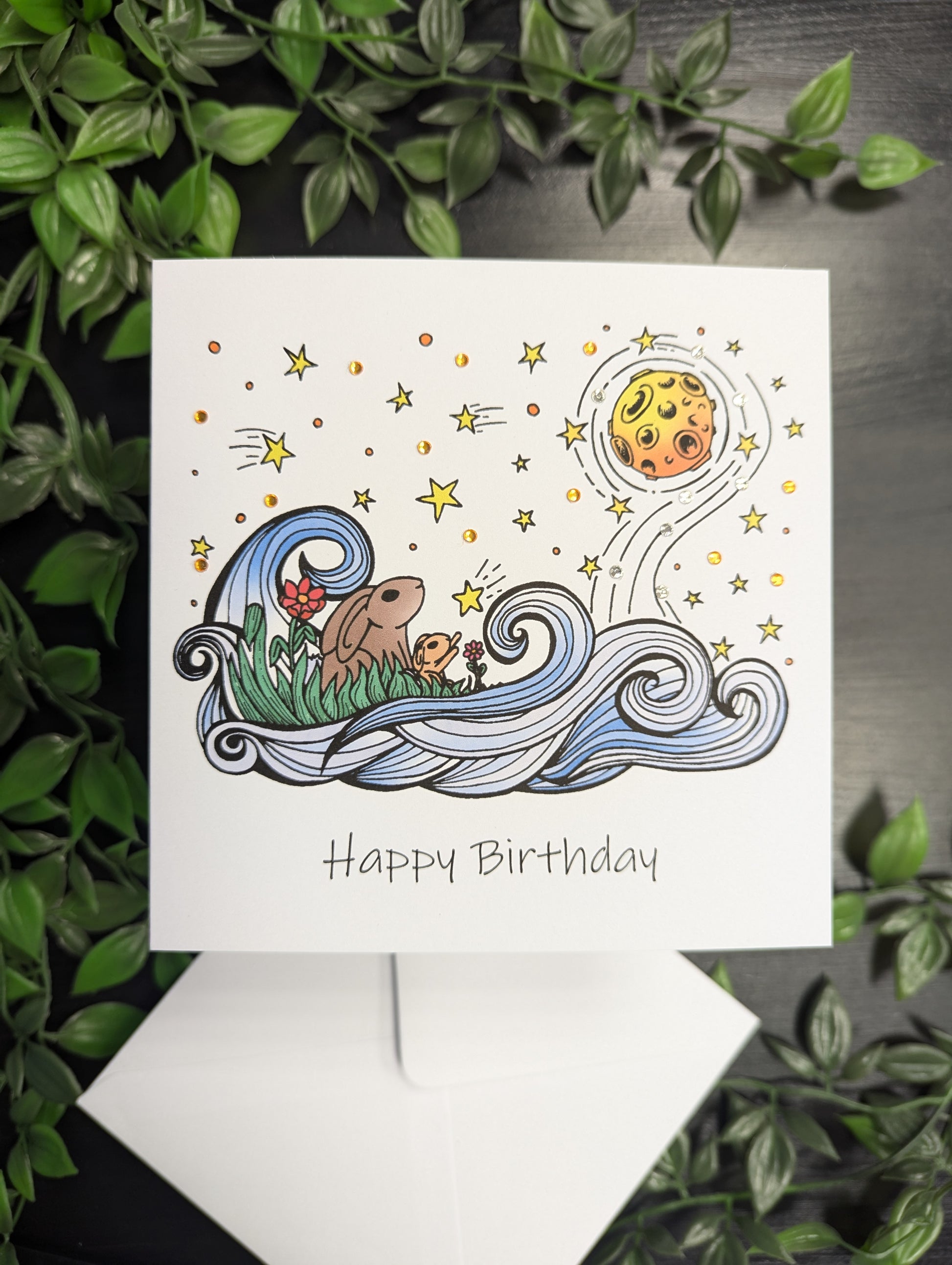 Rabbits and moon Birthday Card