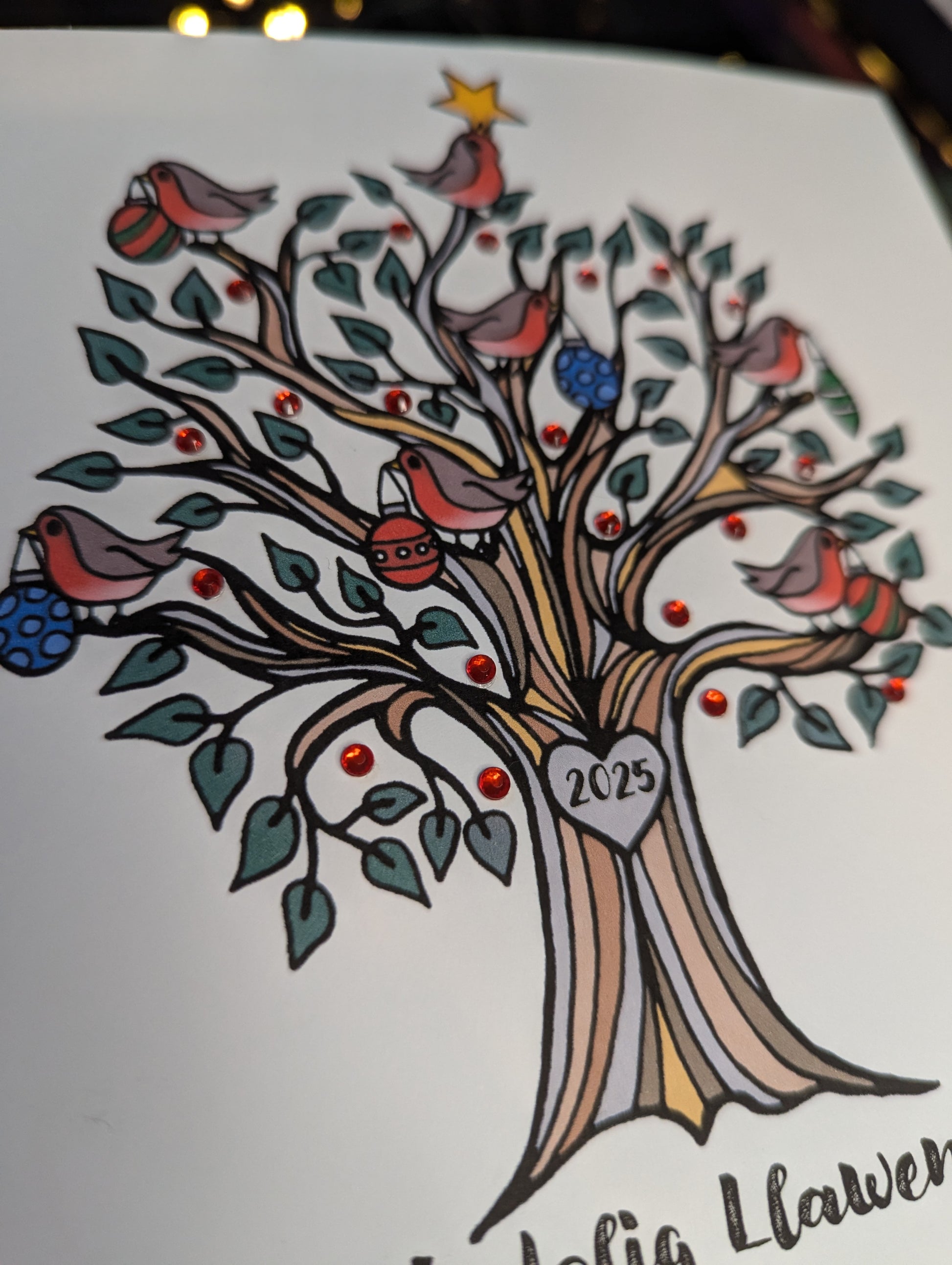 Robin tree Nadolig Llawen Christmas Card (2025)